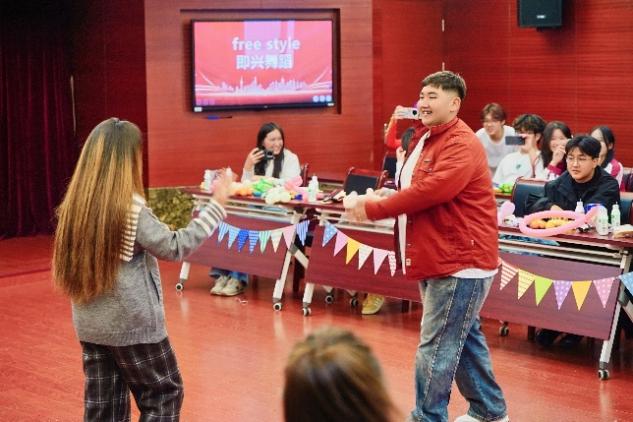 欢迎会现场环节丰富多元,气氛热烈融洽。开场播放的学院宣传视频,从专业建设、师资力量、实训设施到育人成果等维度,全方位展现学院学科特色与办学实力;随后的探校视频以沉浸式视角,带领访学学生“云游”校园教学楼、实训基地、生活服务区等区域,帮助其提前熟悉学习生活场景。文艺表演环节更将现场气氛推向高潮:活力四射的舞蹈串烧点燃全场热情,悠扬婉转的萨克斯演奏传递温暖韵律,精心编排的新疆舞蹈既展现民族文化魅力,也让访学学子感受到“家乡般”的温情,深情的歌曲演唱则引发全场情感共鸣。尤为动人的是,访学新同学与阿迪兰·阿斯木老师即兴携手起舞,灵动舞姿中满含对交流学习的期待,也展现出师生间的默契与温情,台下掌声、欢呼声此起彼伏,充分彰显跨区域学子间的情谊与融合。